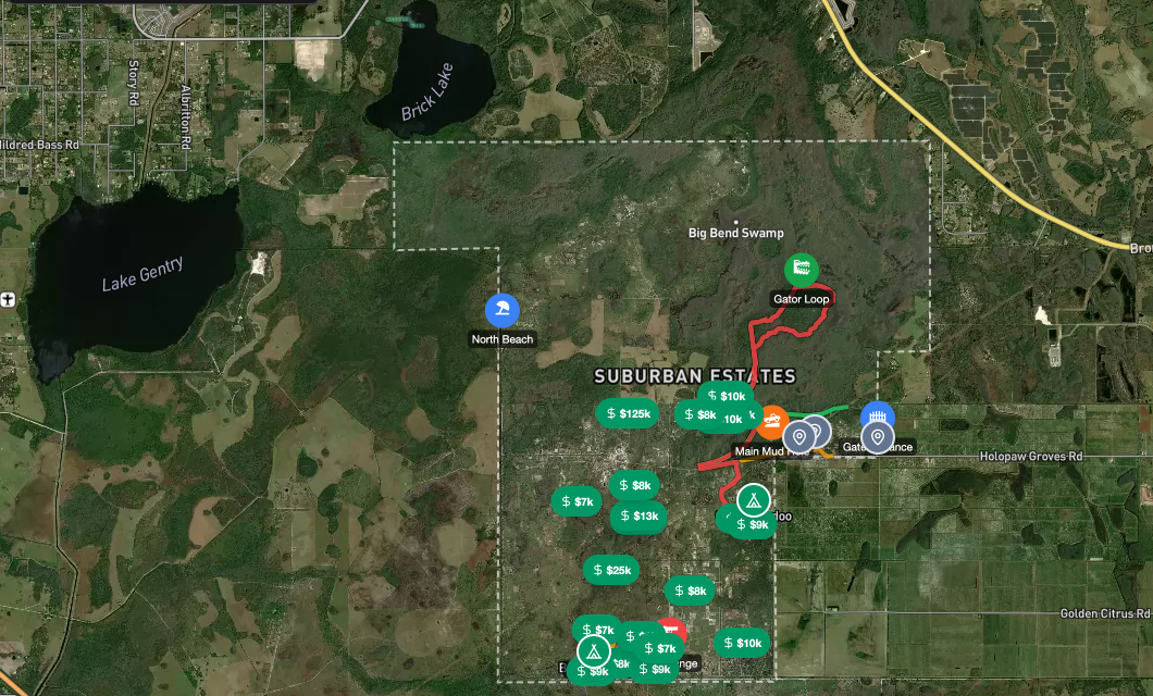LiveSprawling off-grid community with thousands of parcels across ranch land and wetlands in Polk County.