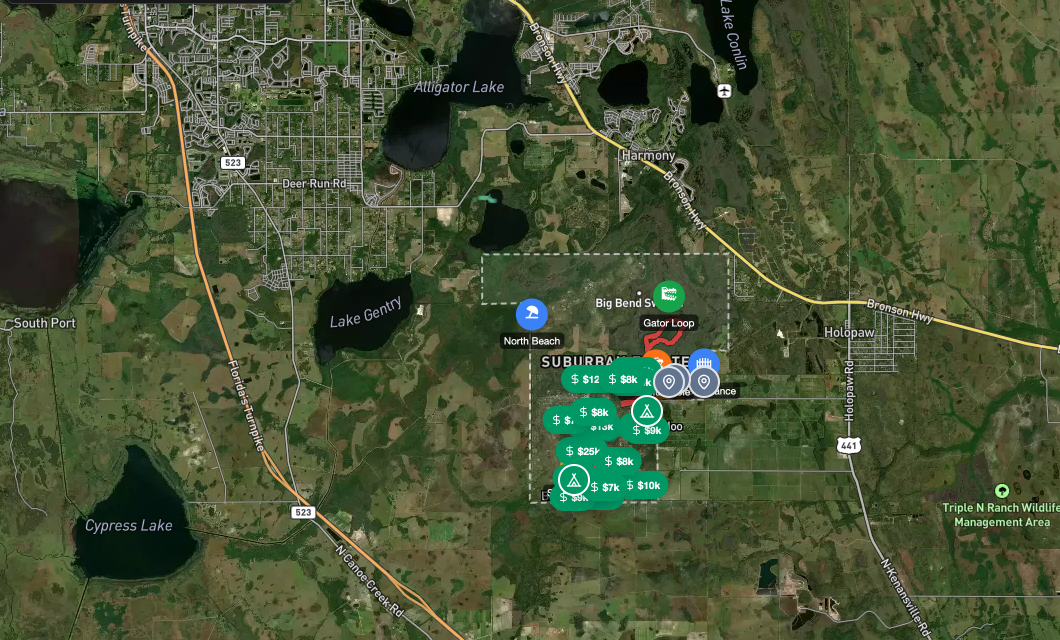 LiveRural off-grid community with thousands of 1.25-acre parcels in the pine flatwoods of Central Florida.